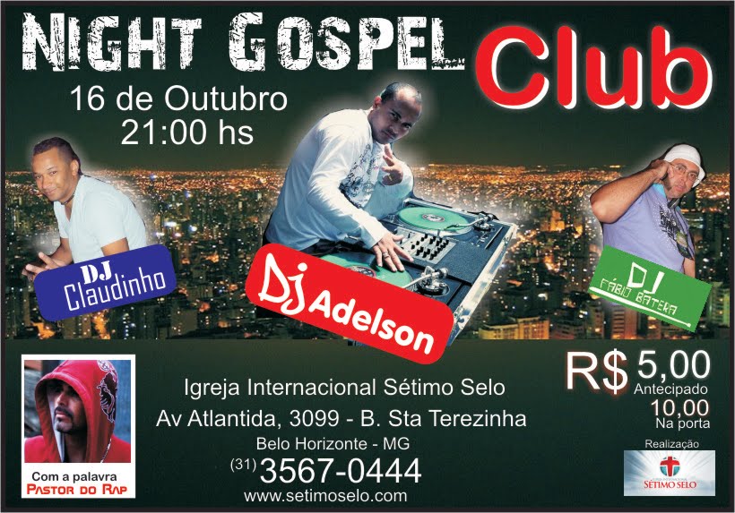 Vem aí o evento que promete, um dos mais esperados do ano, Night Gospel Club, na Igreja Internacional Sétimo Selo dia 16/Out às 21 horas na Av. Atlântida, 3099 - Santa Terezinha - BH/MG.