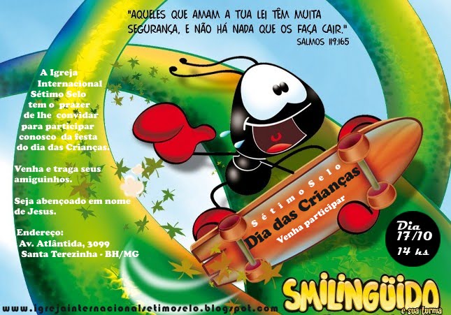Será Domingo, dia 17/10, a partir das 14 horas. Não percam, tragam seus amiguinhos e vamos nos divertir na presença de Deus.